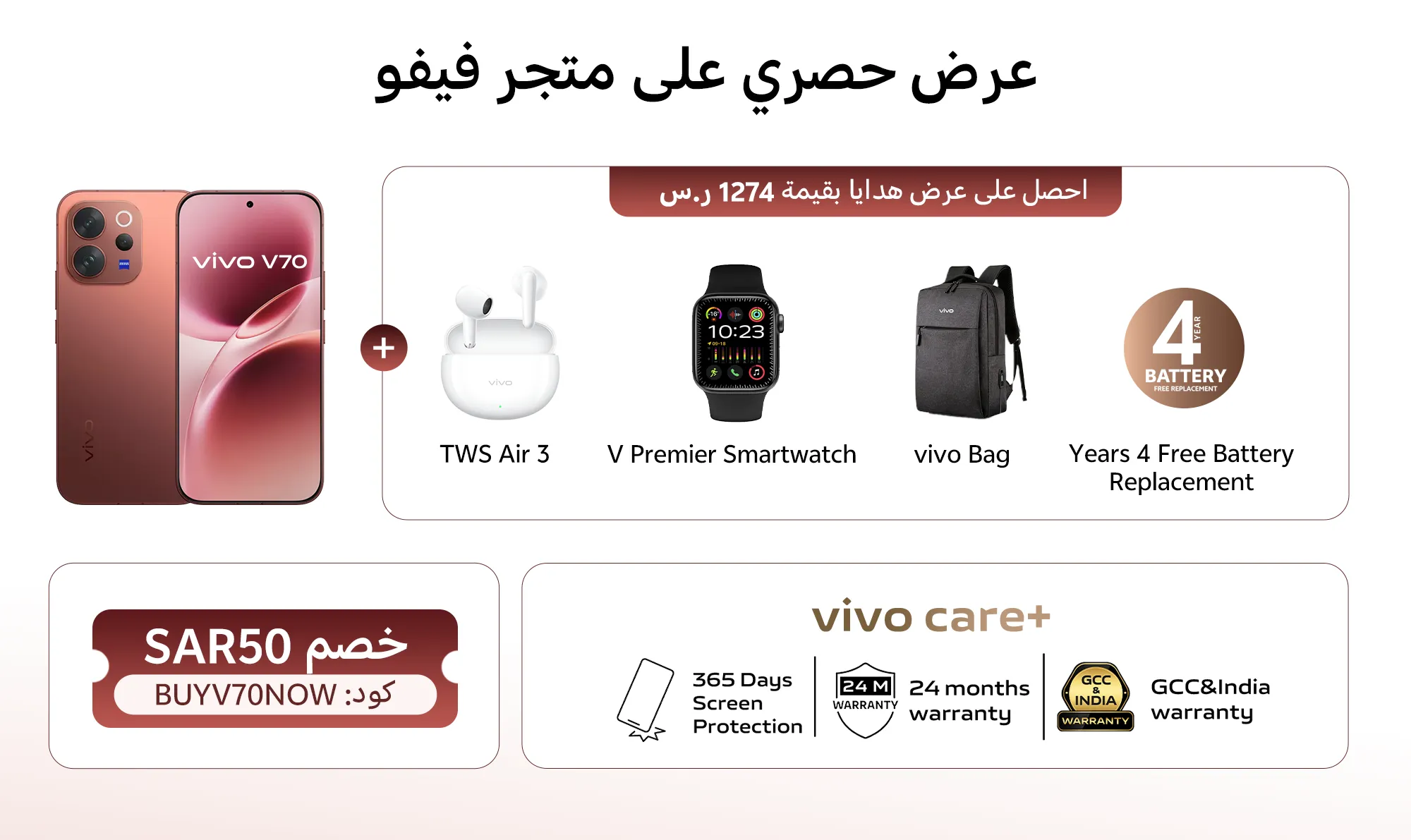 vivo V70(اطلب مسبقًا الآن، الشحن في 12 مارس) 12+256 / Brwonx1